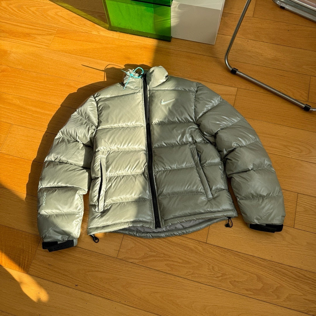 Bring warmth and streetwear flair together with the Nike Puffer Jacket collection. Featuring a glossy finish and minimalist design, these jackets combine premium comfort with standout urban style. Available in eye-catching metallic silver and soft rose pink, they’re perfect for colder days with a modern touch.